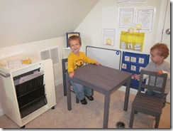 Alex is very matter of fact about it. He helped me set up the corner – moving furniture, helping to pound nails to put up the boards on the wall, and choosing which activities he wanted to do each day.