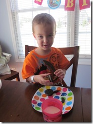 Alex is very anxious to do the Glow Explosion art this afternoon while the little ones are napping, and the boys loved listening to the Chicka Chicka Boom Boom CD as they fell asleep last night. But the best part will come as no surprise to any parent: