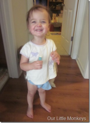 I wanted to catch her silly-ness in the moment. Her diaper is all fixed now!
